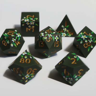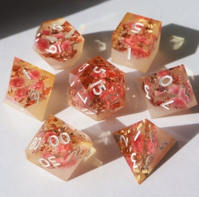Wallflower - hand-painted & handmade sharp edge 7 piece dice set